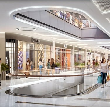 Achieved the iconic "diamond" architectural form through complex geometric glazing and custom façade systems. APEX's detail-oriented coordination was critical in installing the high-performance curtain walls, cladding, and signature skylights that define the mall's luminous aesthetic.
